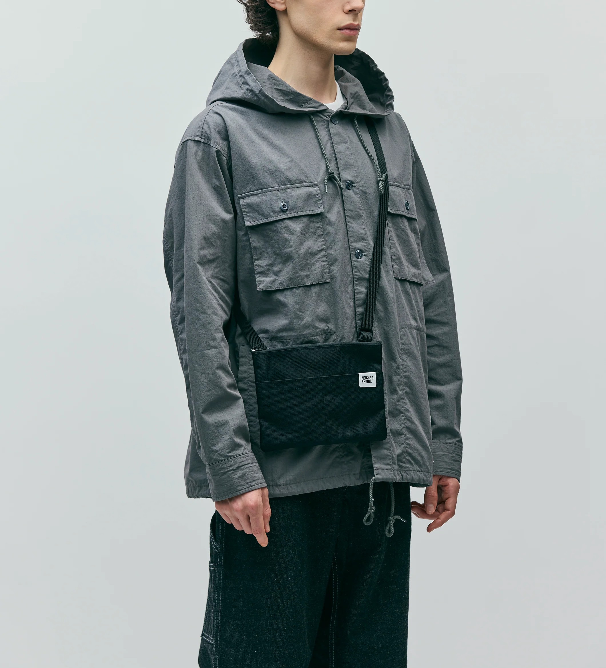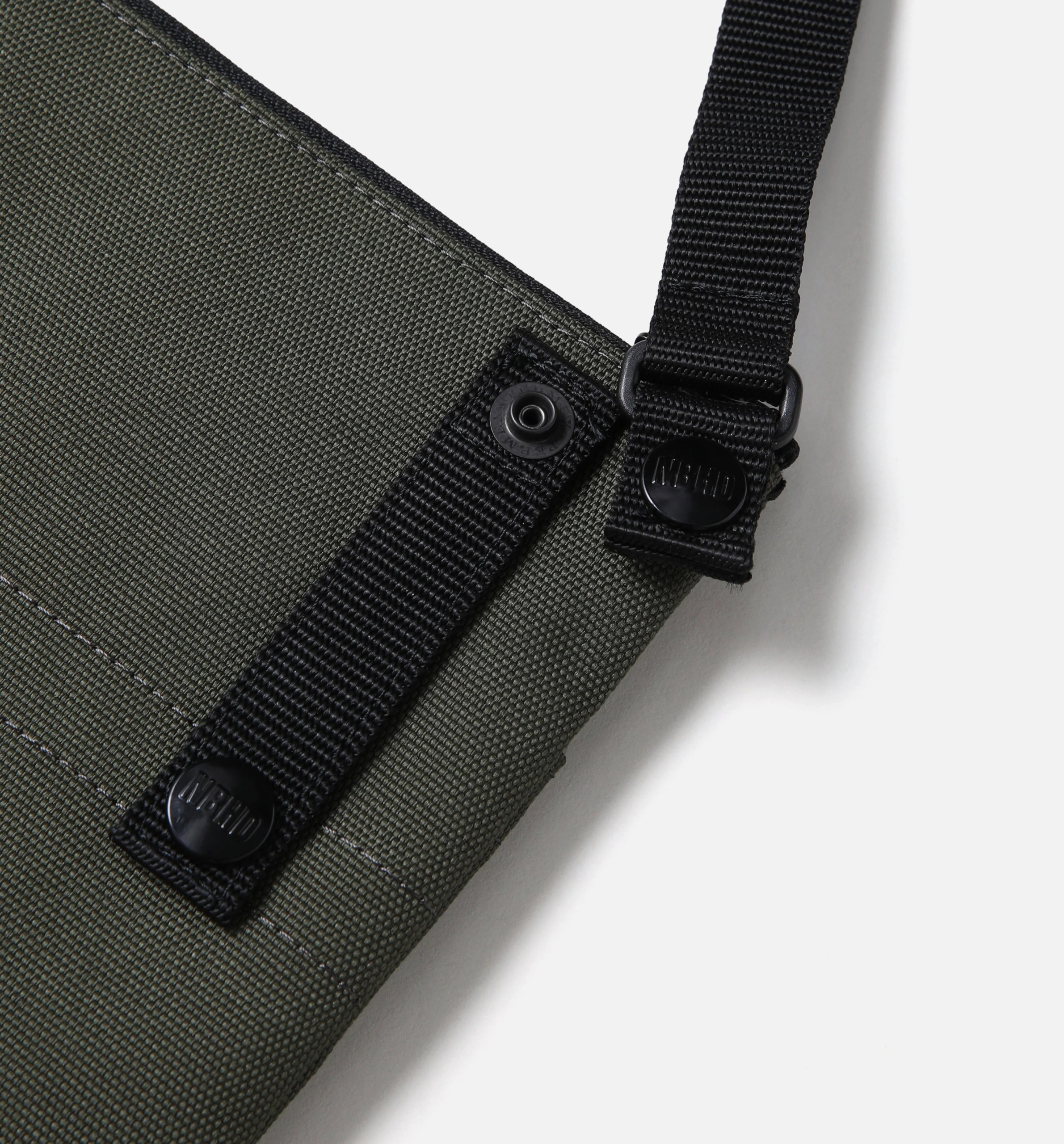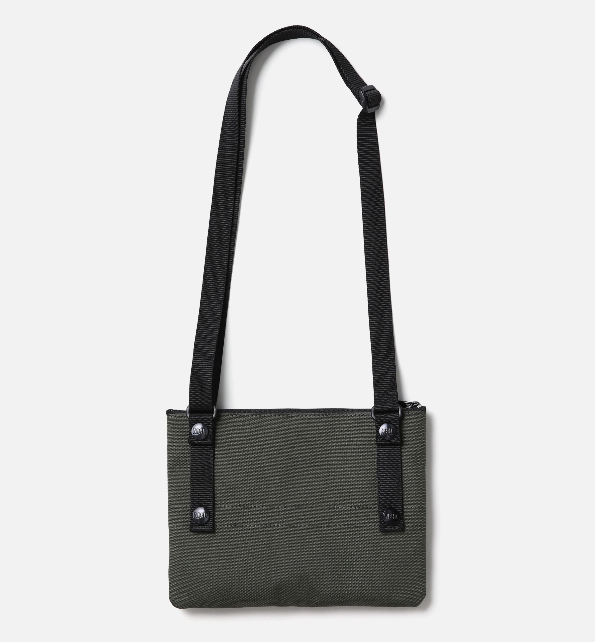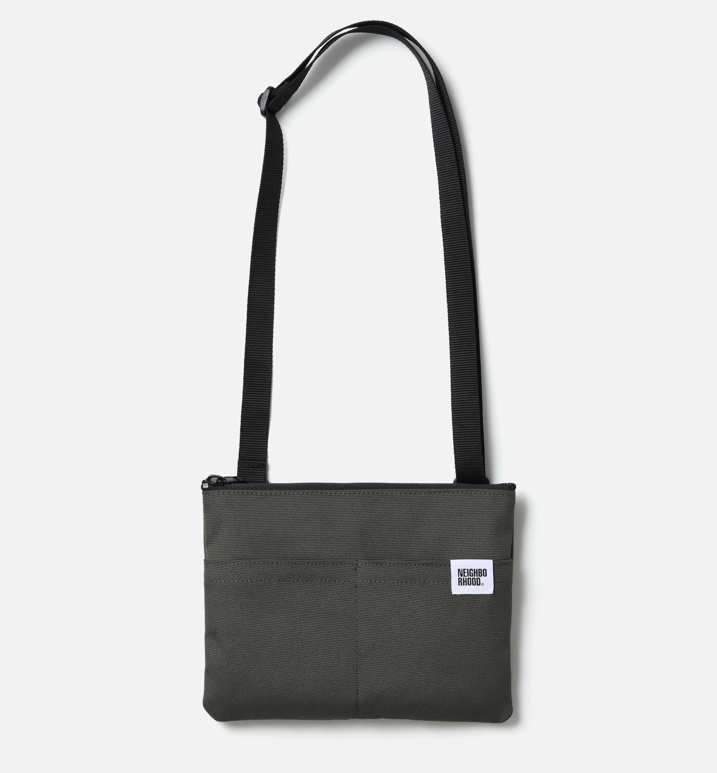 耐引裂性、摩耗、引き裂き、擦り切れに強いCORDURA®fabricを使用したショルダーバッグ。天面にファスナー付きポケット、フロントには仕切り付きポケットを配置。ショルダーストラップを外せばポーチとしても使用可能。ネームタグとオリジナルのスナップボタンを付属。W220/H170(mm)
