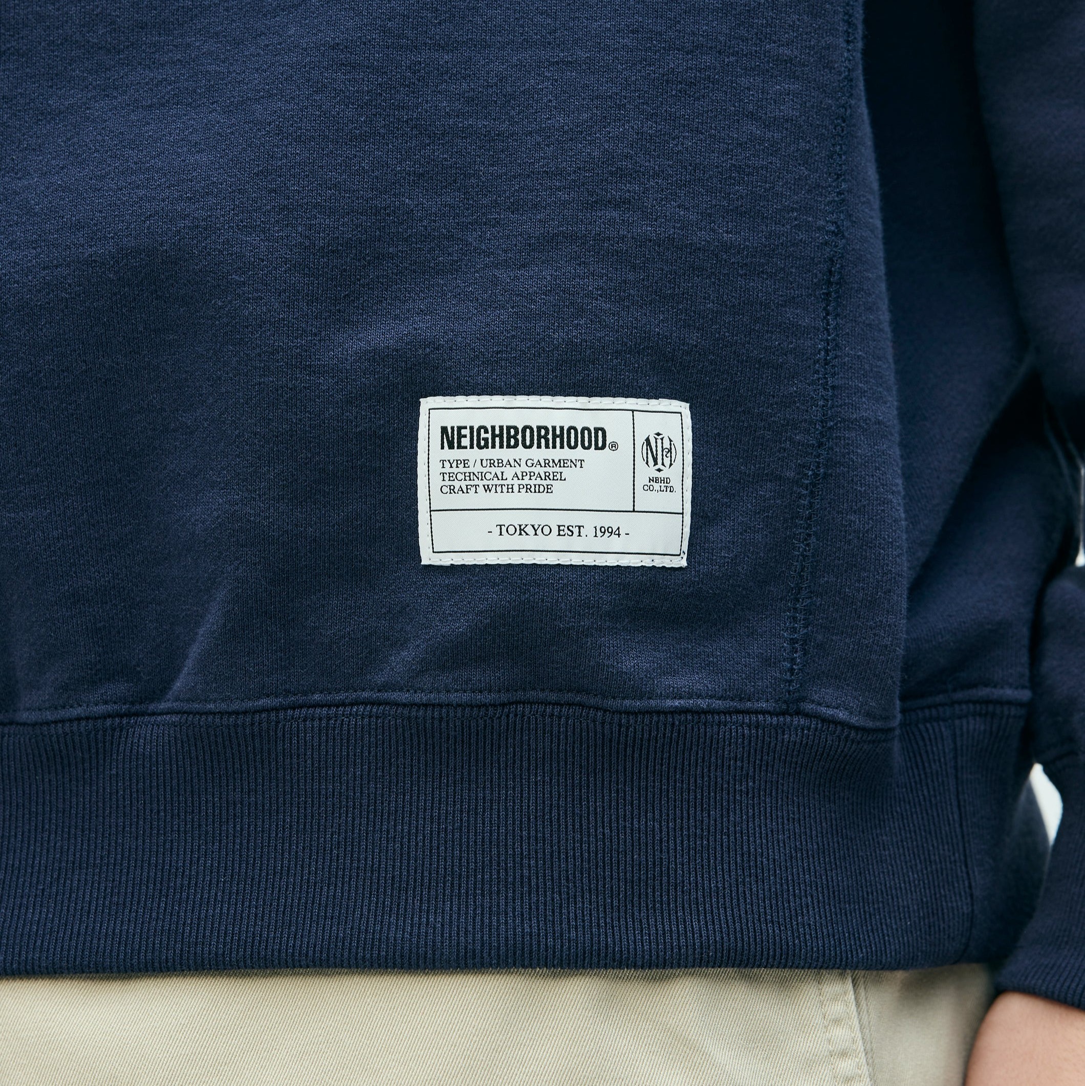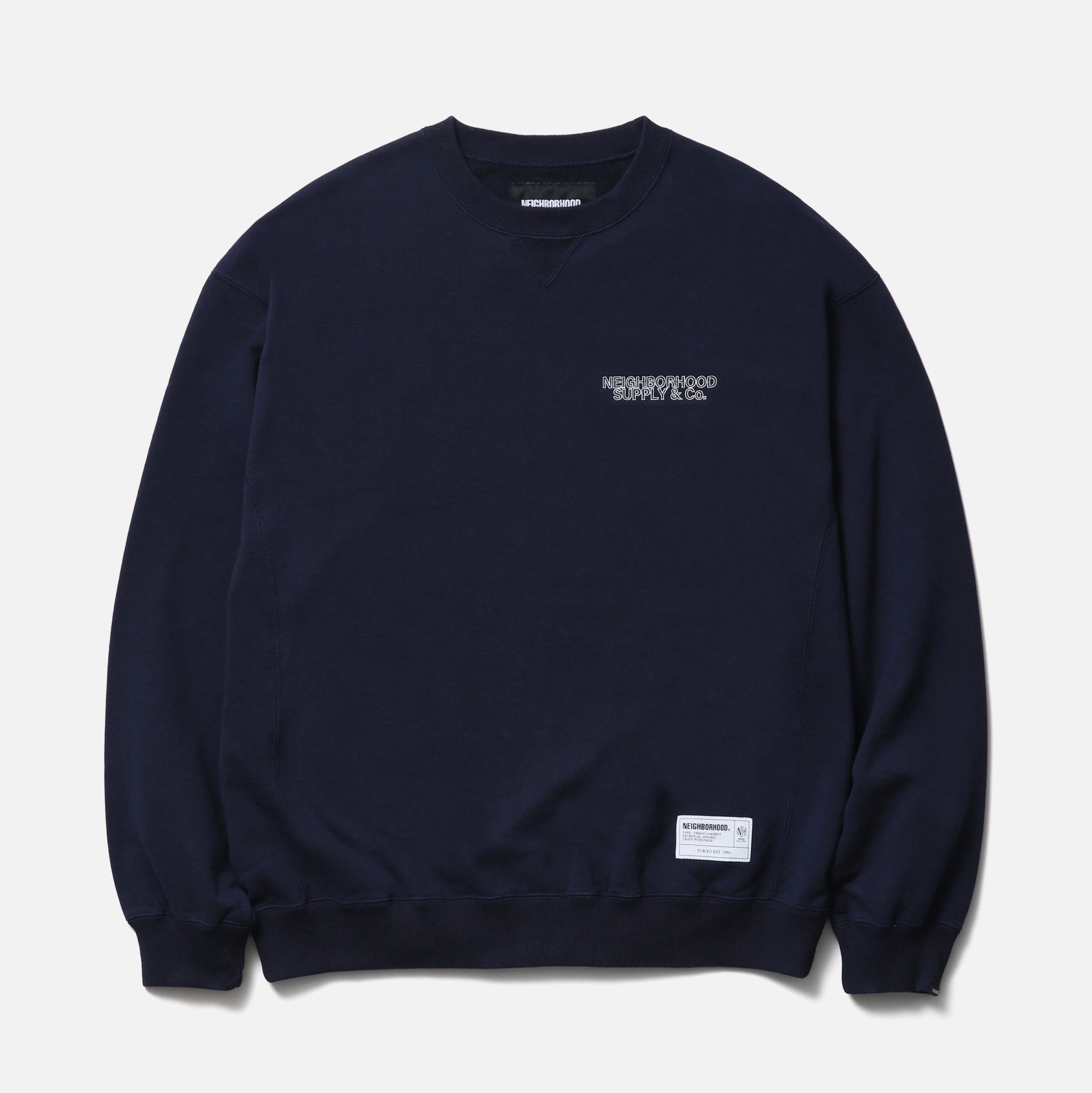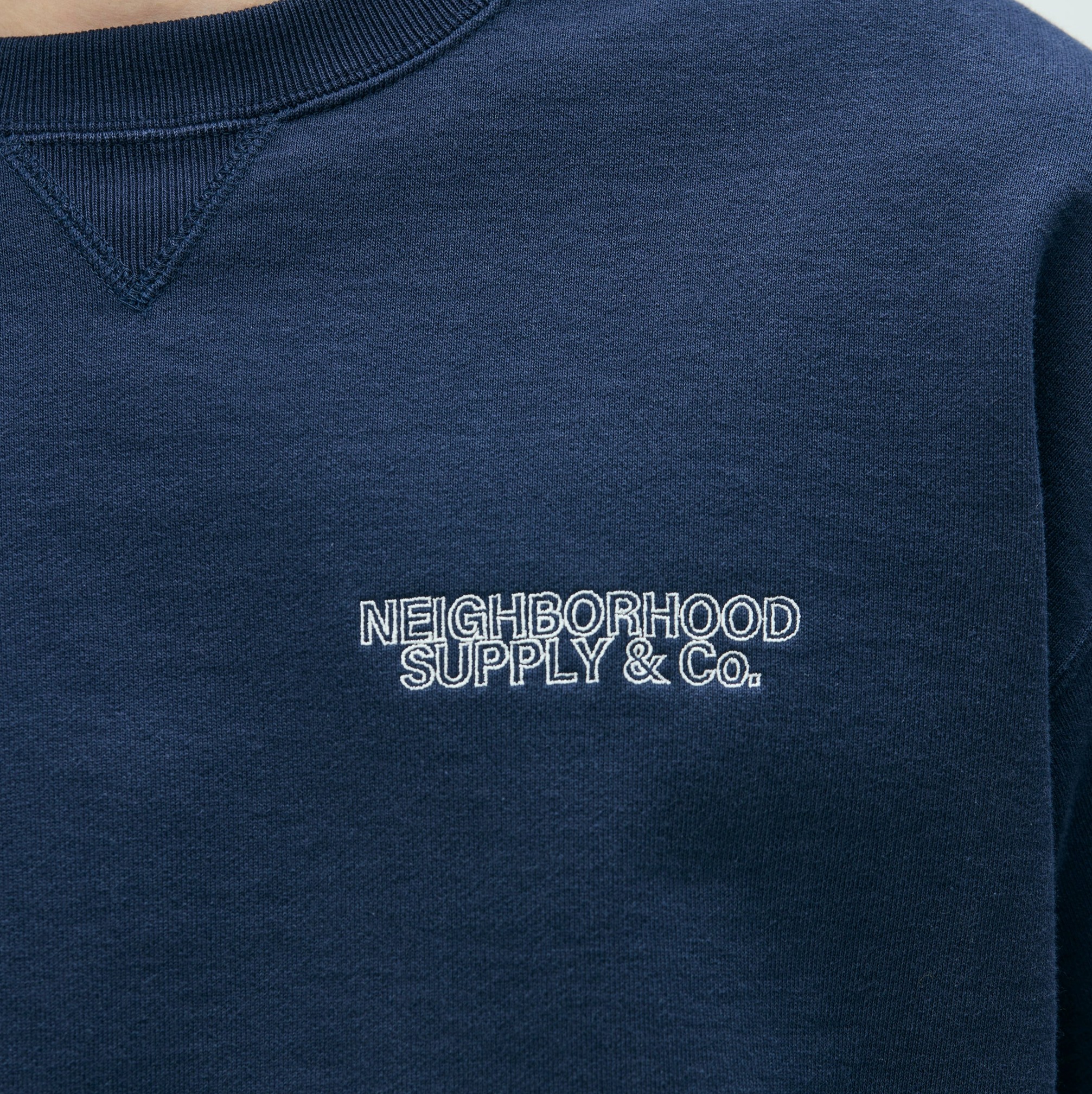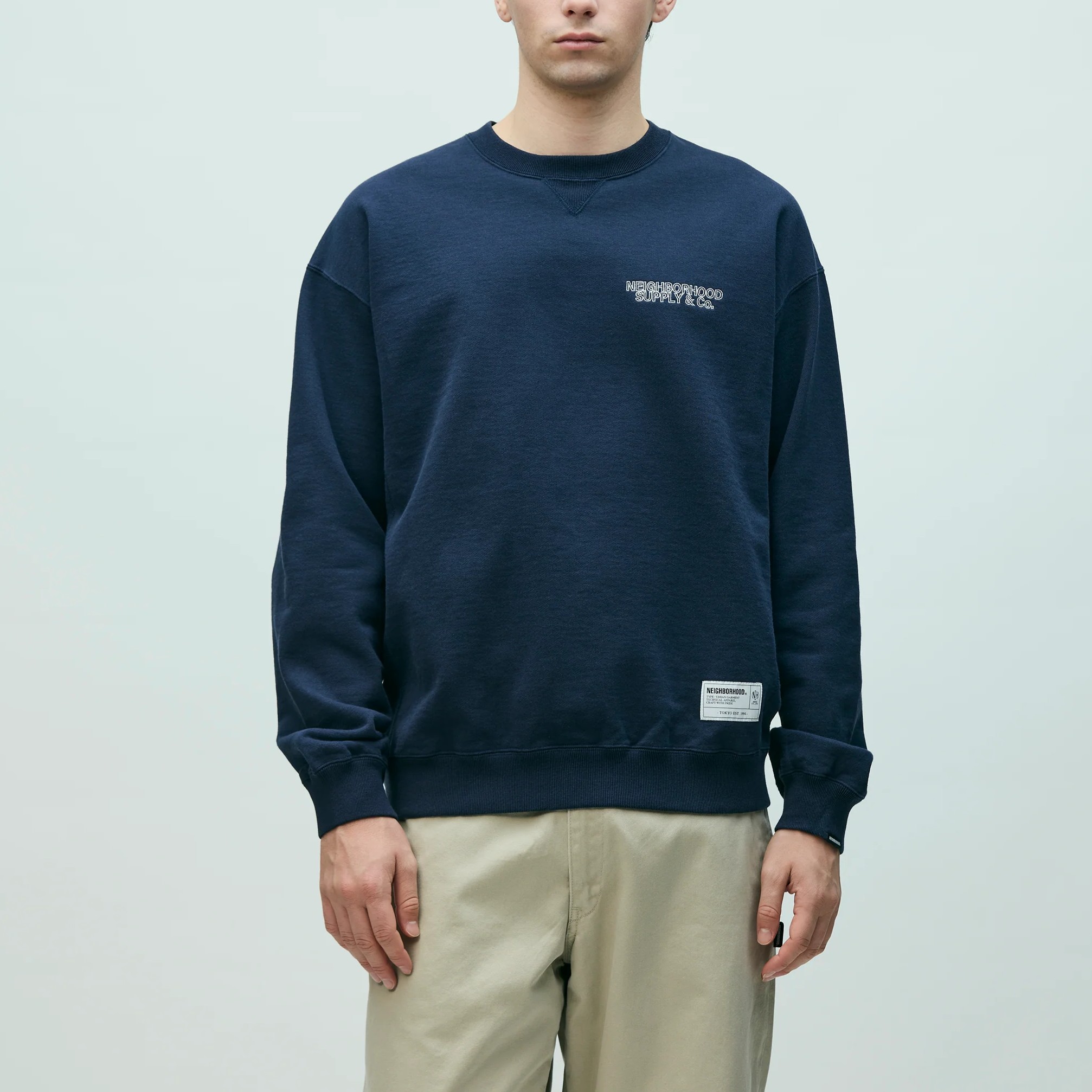 オーガニックコットン紡績の裏毛素材を使用したクルーネックプルオーバー。左胸にロゴ刺繍を配置。左裾にブランドタグ、袖口にピスネームを付属。ワンウォッシュ仕上げ。MODEL:185cm / SIZE:L