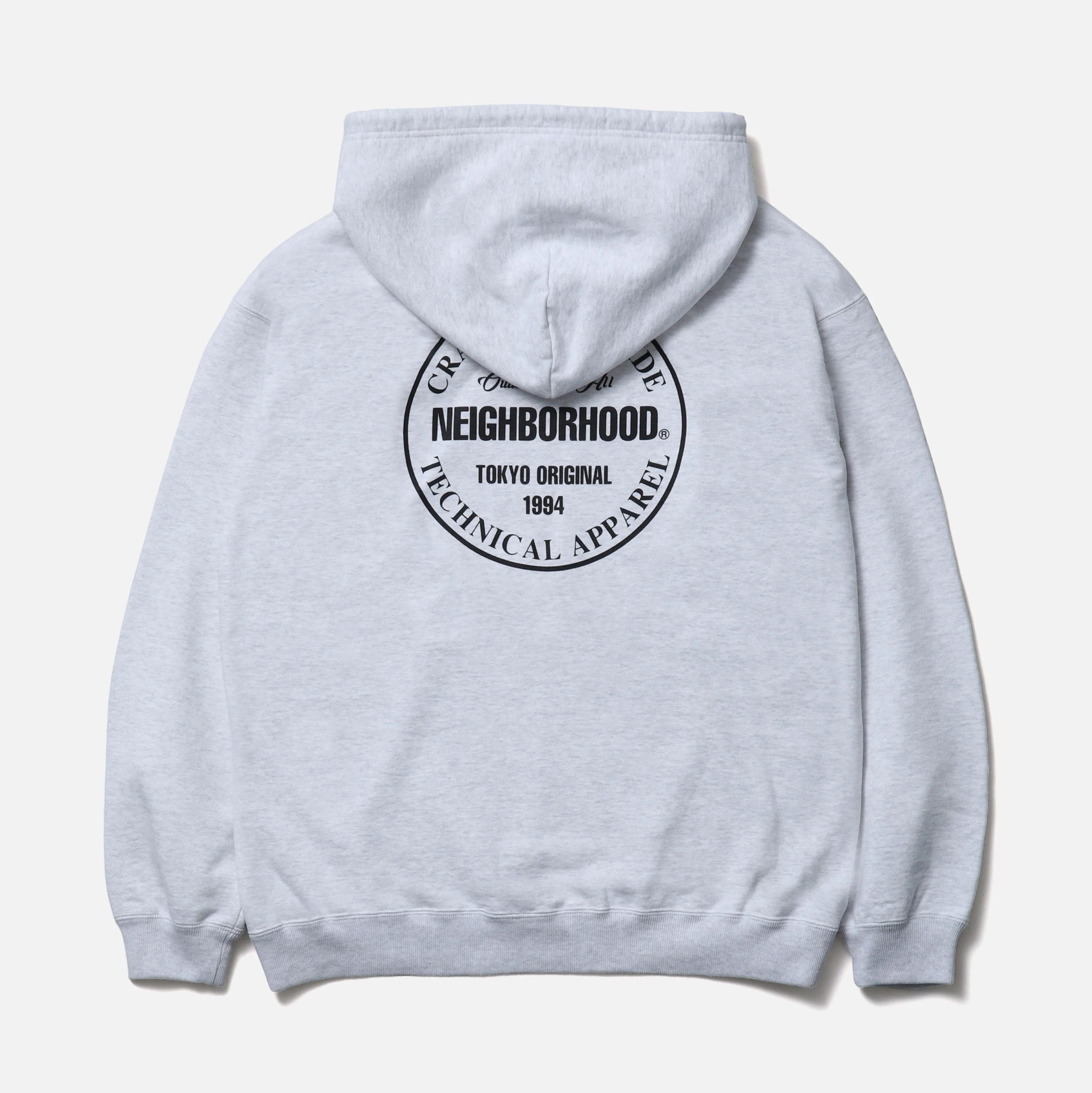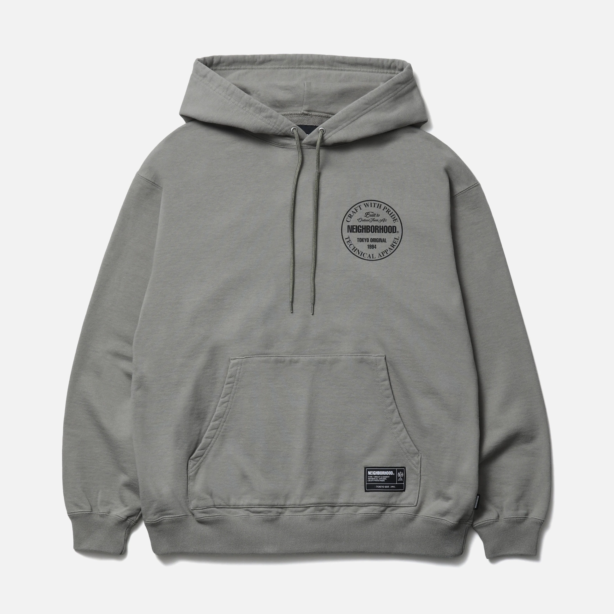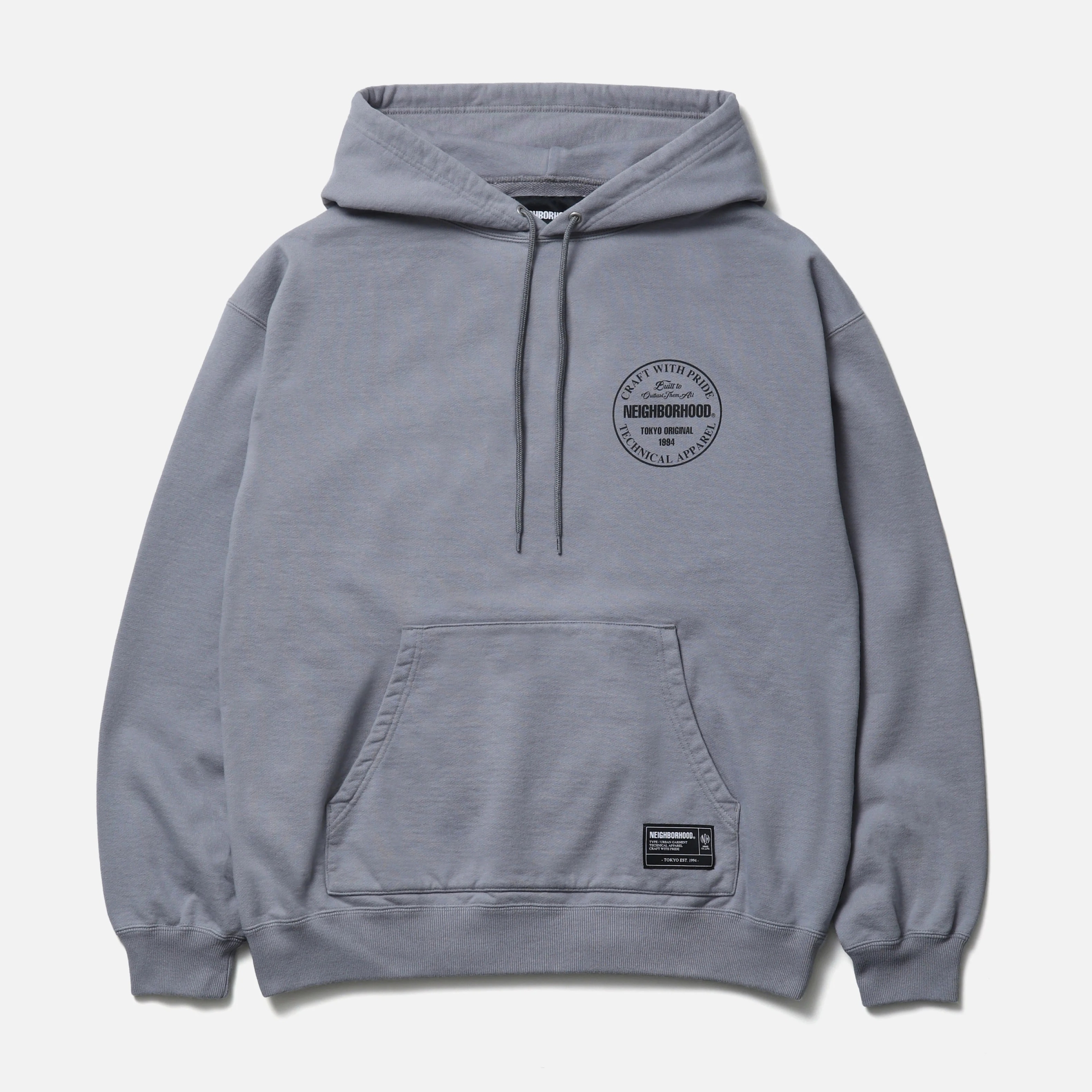程よく厚みのあるコットン裏毛素材を使用したプルオーバーフーディ。左胸と背面にロゴをプリント。フードにはオリジナル仕様の調節用ドローコードを採用。左裾にブランドタグ、脇接ぎにピスネームを付属。ワンウォッシュ仕上げ。MODEL:186cm / SIZE:L