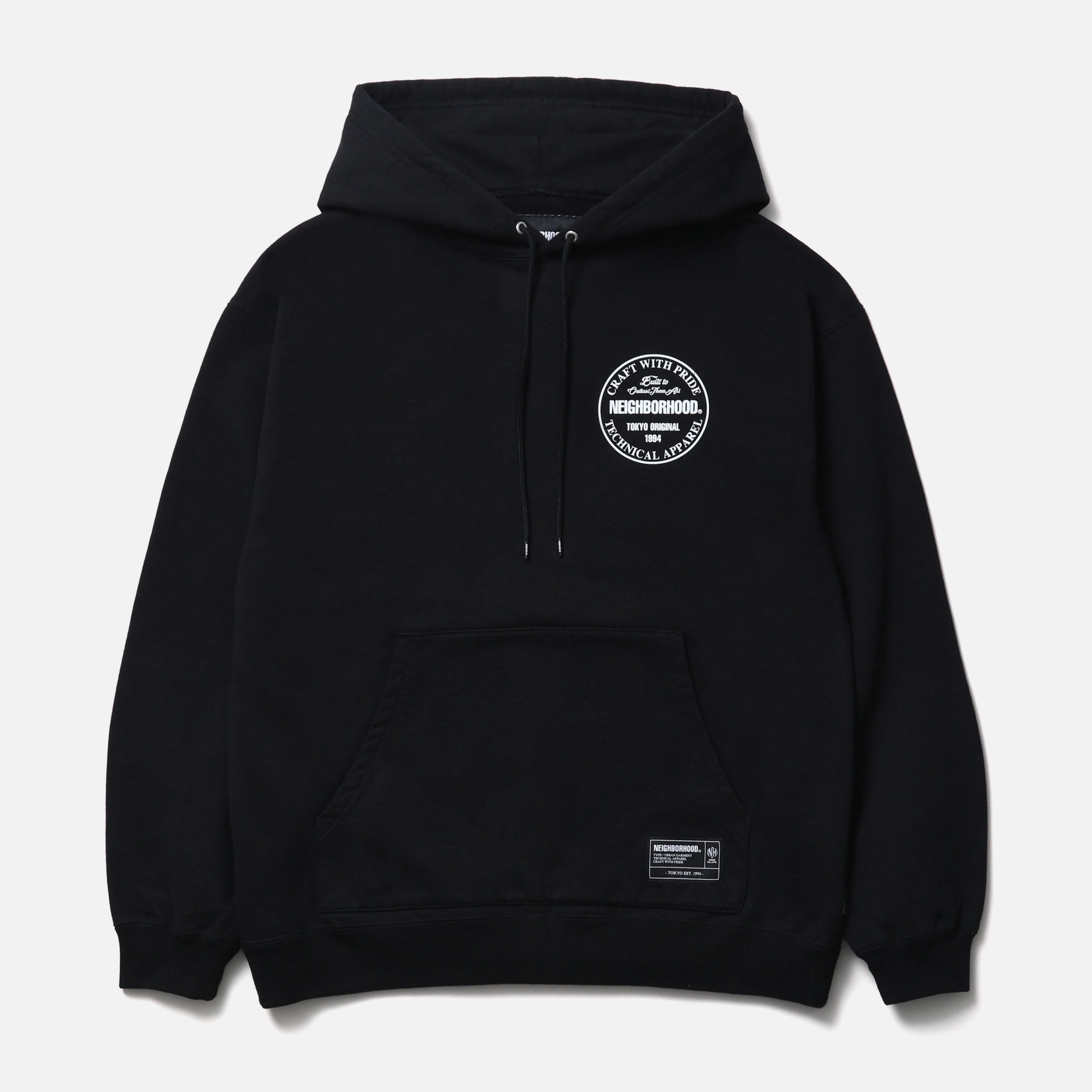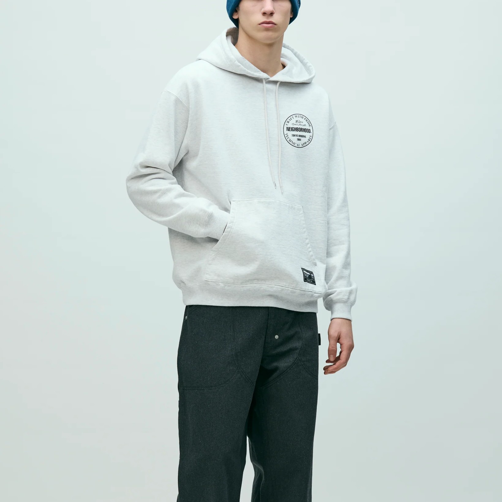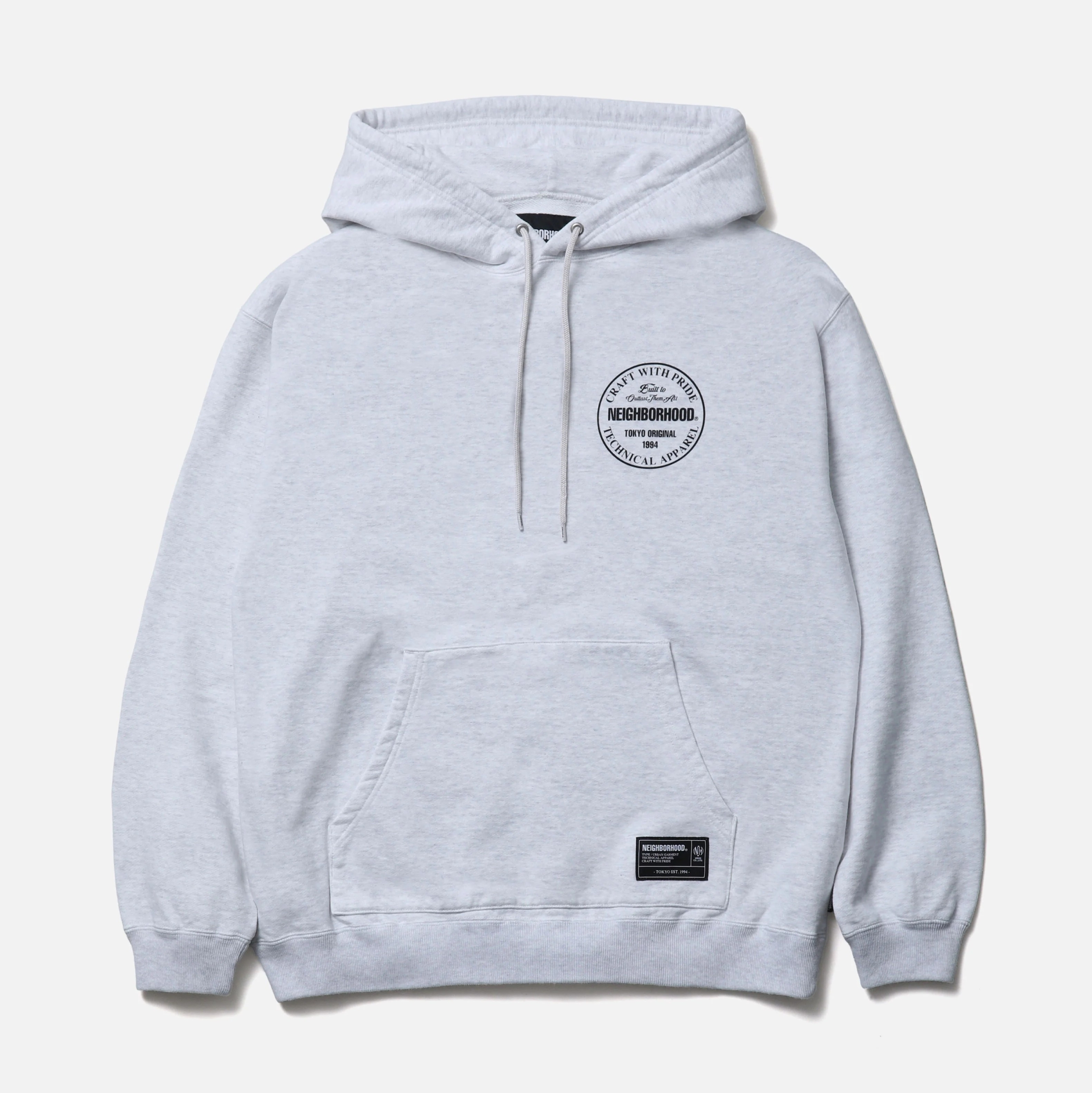 程よく厚みのあるコットン裏毛素材を使用したプルオーバーフーディ。左胸と背面にロゴをプリント。フードにはオリジナル仕様の調節用ドローコードを採用。左裾にブランドタグ、脇接ぎにピスネームを付属。ワンウォッシュ仕上げ。MODEL:186cm / SIZE:L