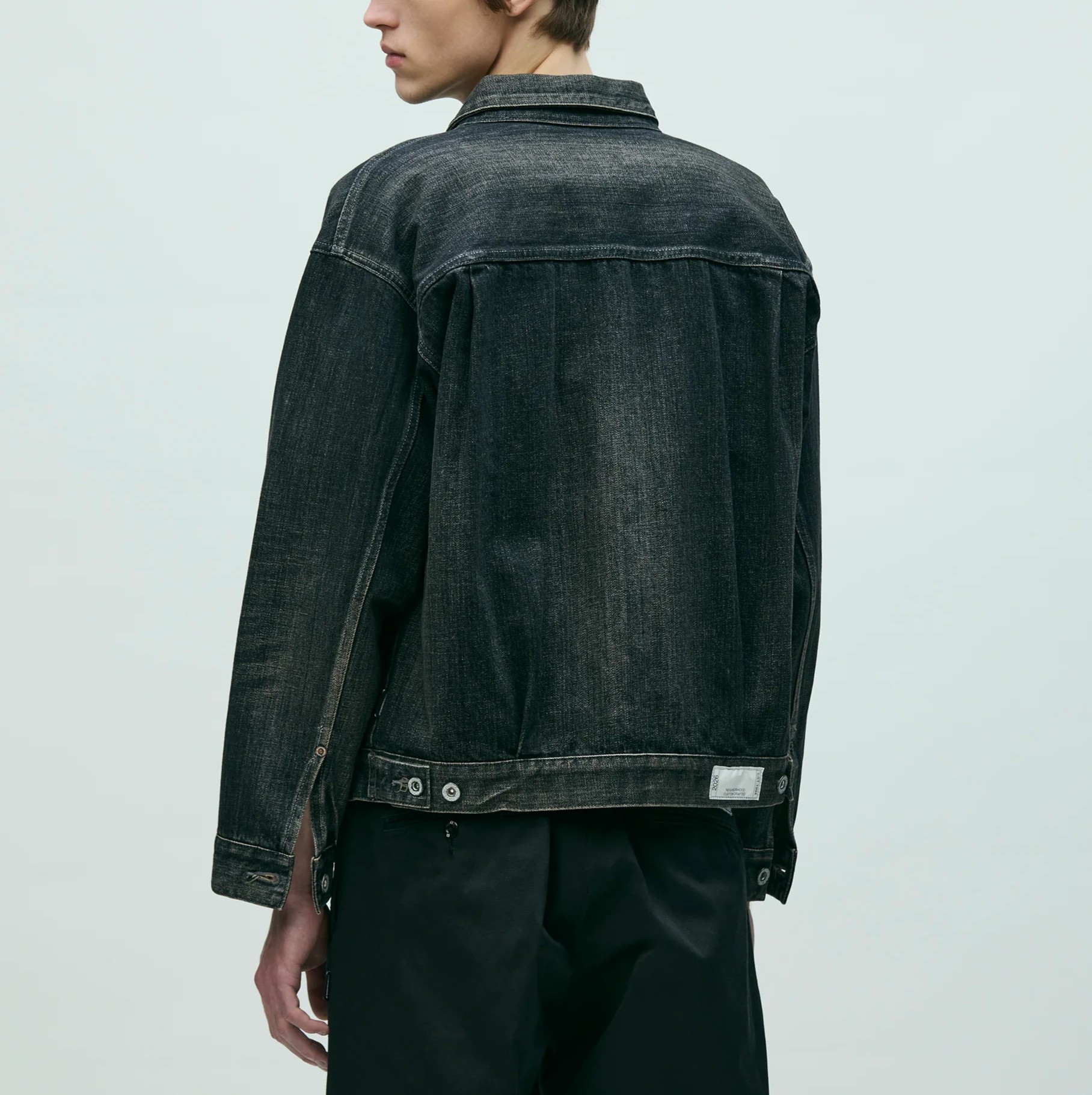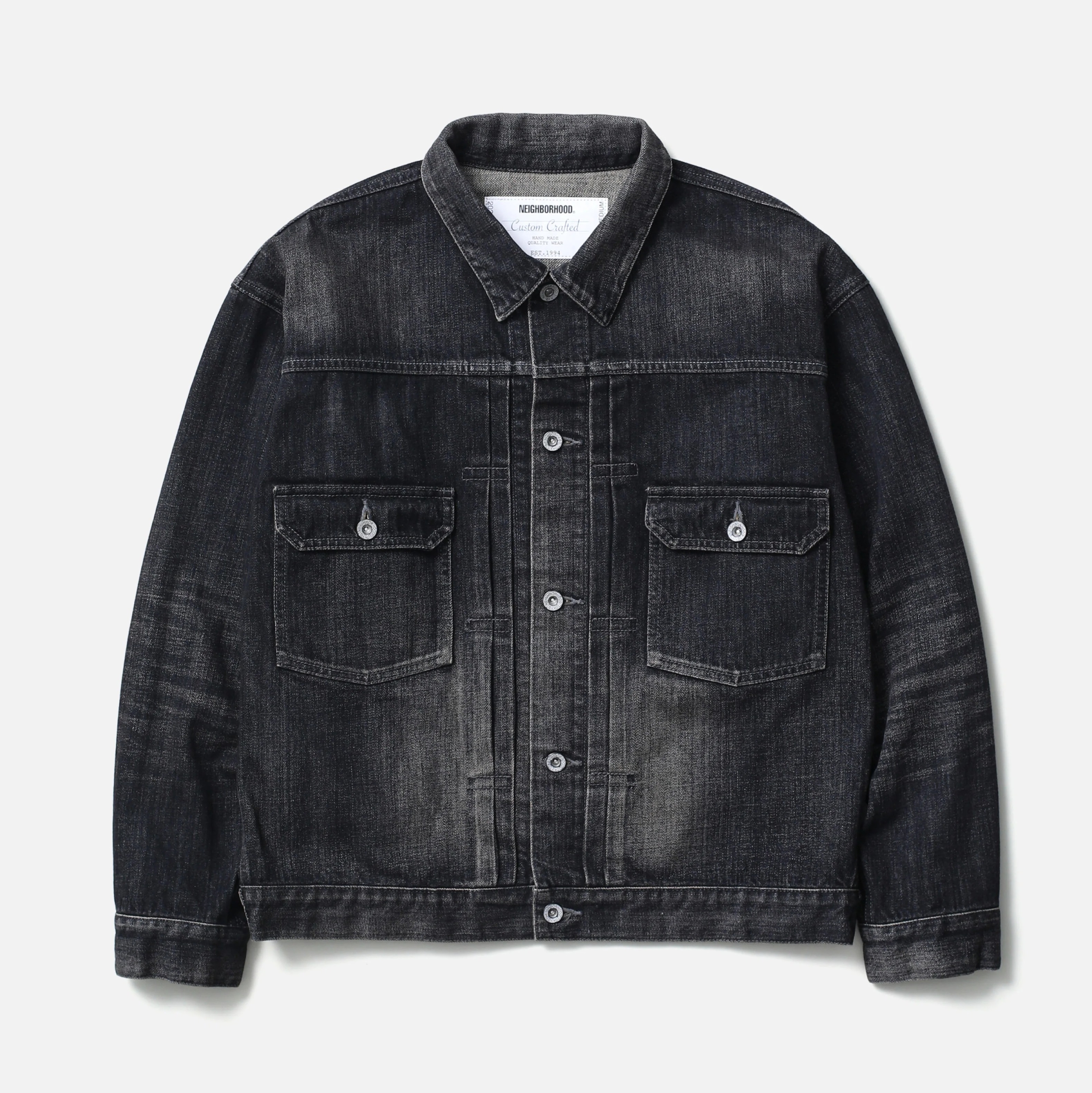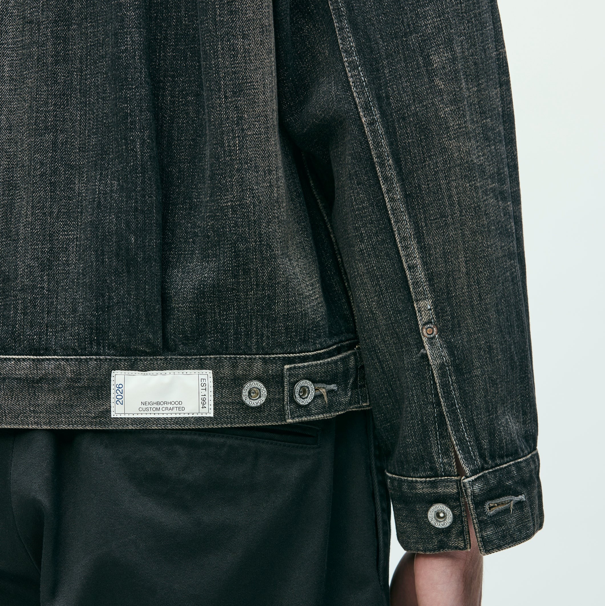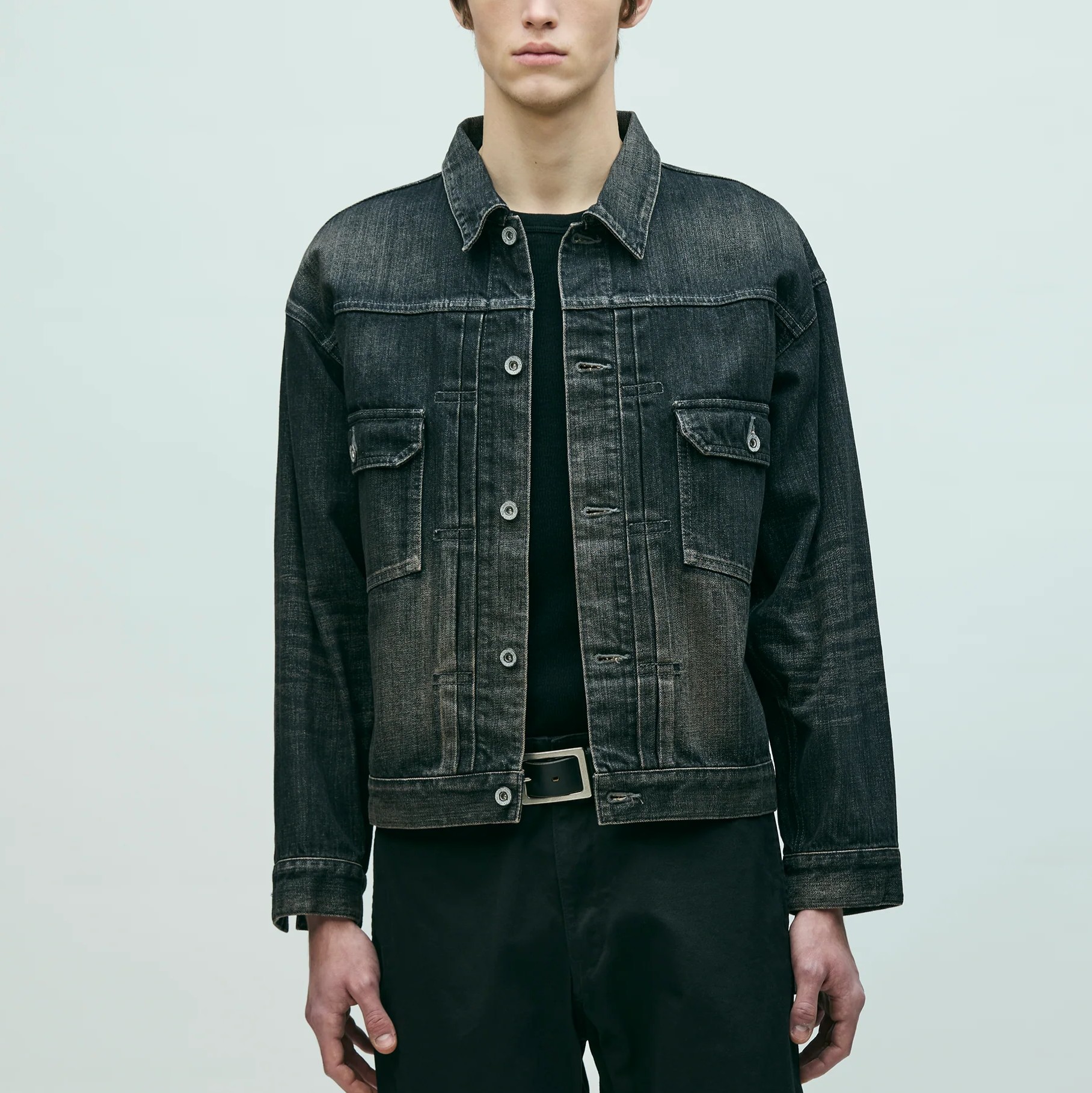 オリジナルの12ozデニム生地にウォッシュド加工を施した2ndタイプのデニムジャケット。自然な色落ちやダメージ加工などの複合加工を用いて、リアルなエイジングを再現。ステッチは配色仕様。オリジナルのタックボタンとリベットを採用。カスタムクラフテッドアイテム専用のサイズネーム、脇接ぎにピスネームを付属。MODEL:186cm / SIZE:M