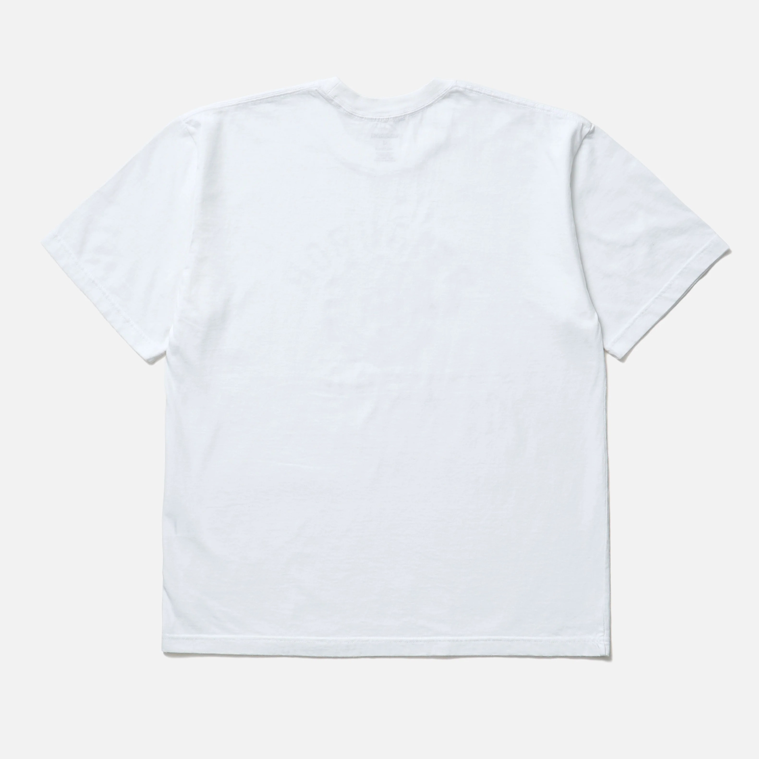 コットン天竺のオリジナルボディを使用したショートスリーブTシャツ。正面にグラフィックをプリント。ワンウォッシュ仕上げ。MODEL:186cm / SIZE:L
