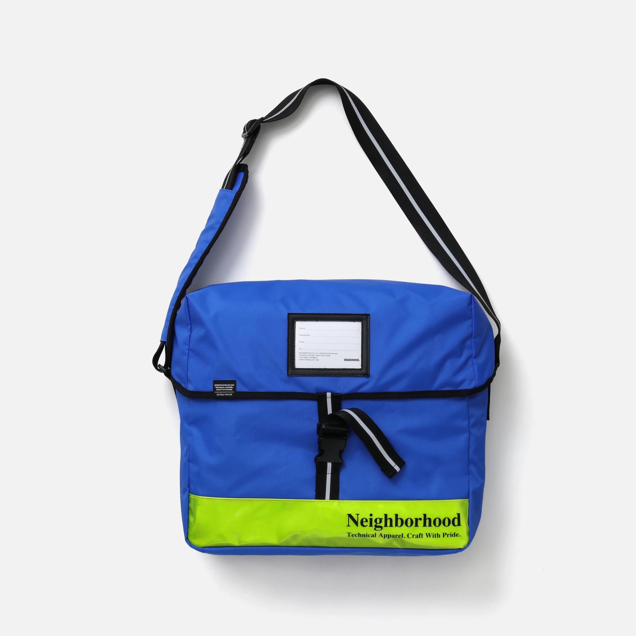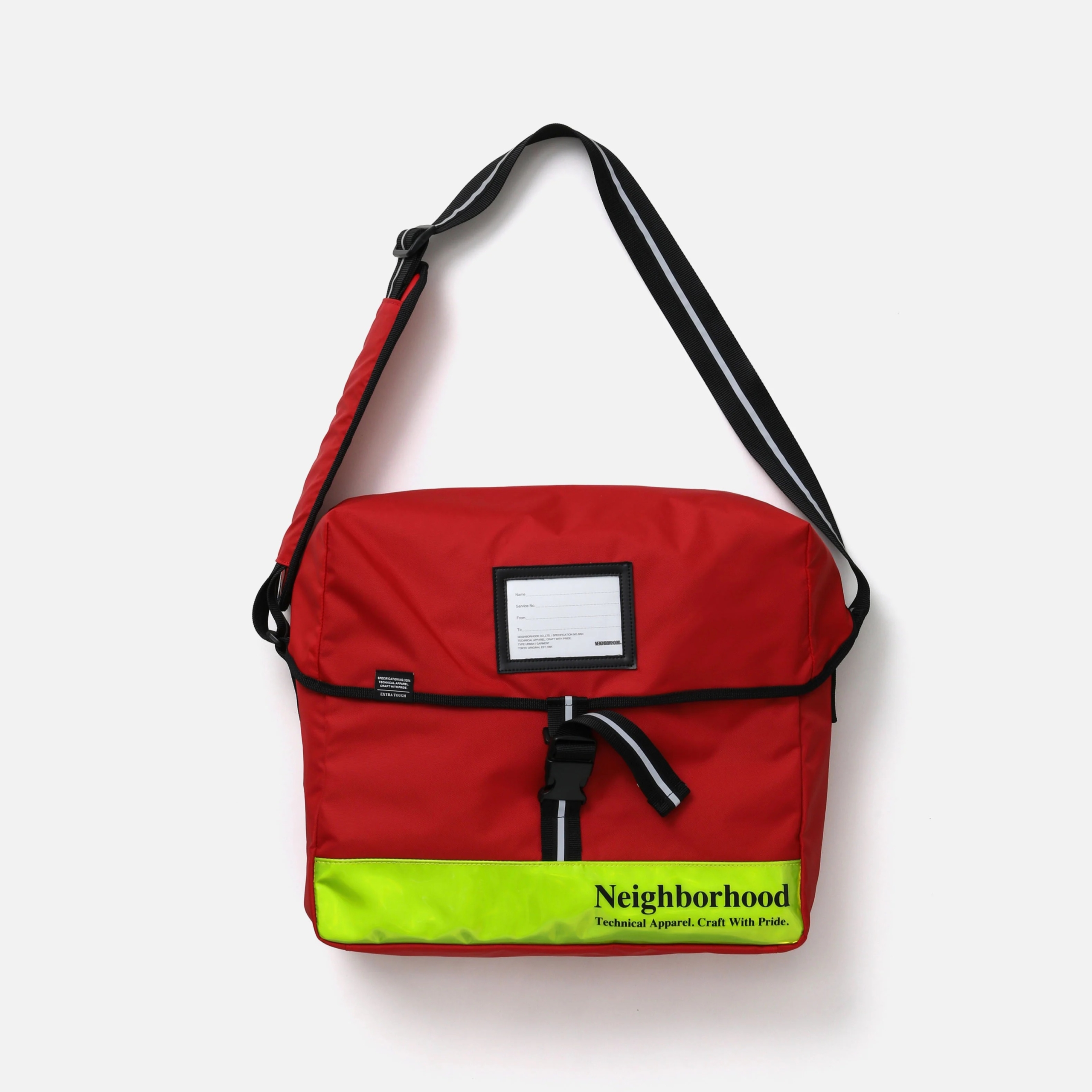 テフロン加工を施した耐久性に優れた撥水効果のあるナイロンオックス素材のメッセンジャーバッグ。実際の郵便配達員のバッグがモチーフ。フロントにIDカードホルダーを備え、肩への負担を軽減する厚手パッド付きショルダーストラップを採用。濡れても反射性を維持可能なリフレクターテープ部分にロゴプリントを配置。収納力と耐久性を兼ね備えた仕様は、自転車での移動から日常使いまで幅広いシーンに対応。W370/H330/D130(mm)