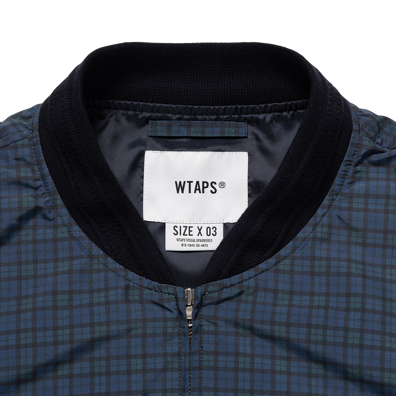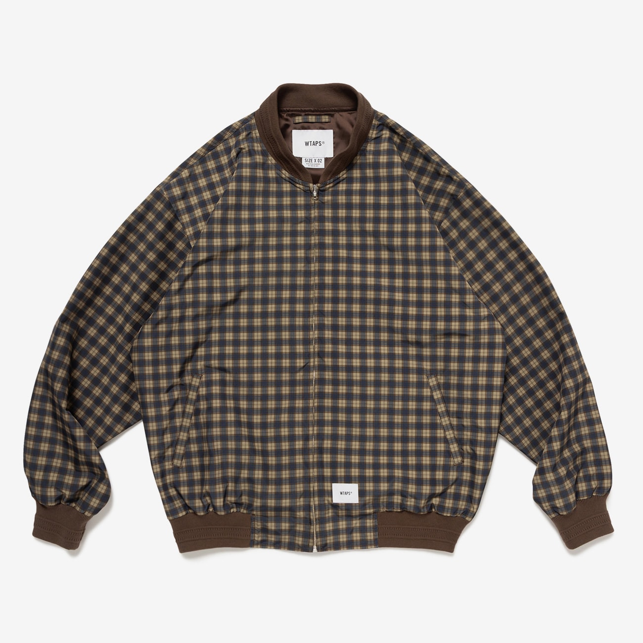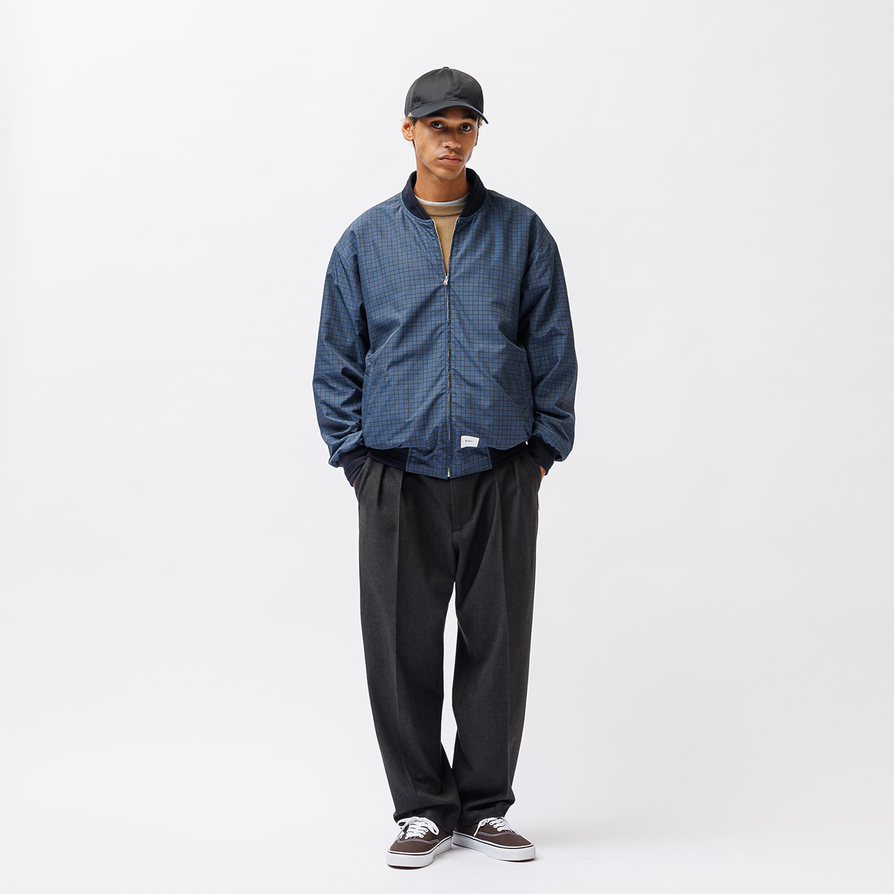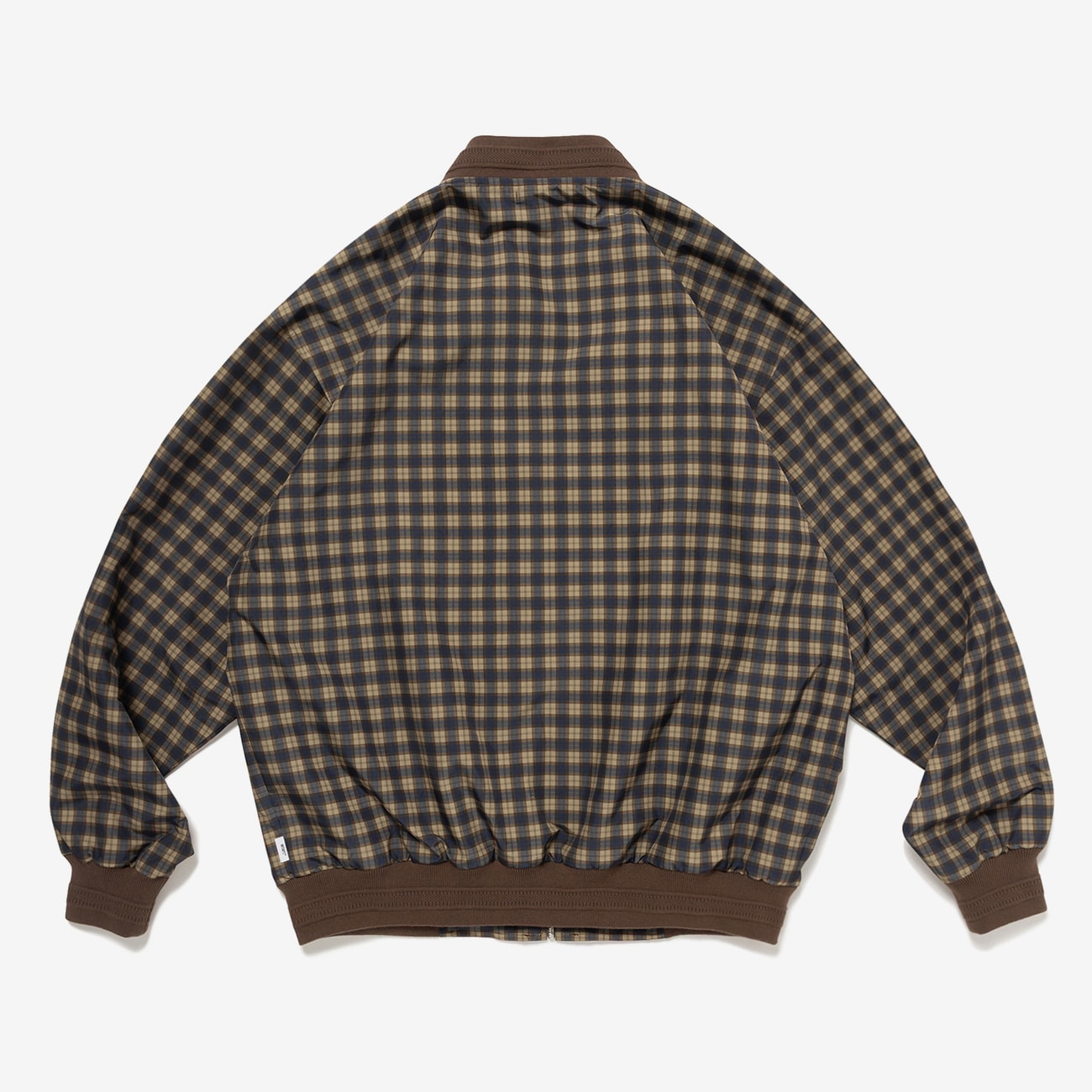 オリジナルブラックウォッチのタッサー生地を使用したカレッジジャケット。裏地にはリサイクル素材のECOUSEを使用。袖口と裾はリブ仕様。MODEL : 178cm / SIZE : LARGE(03)