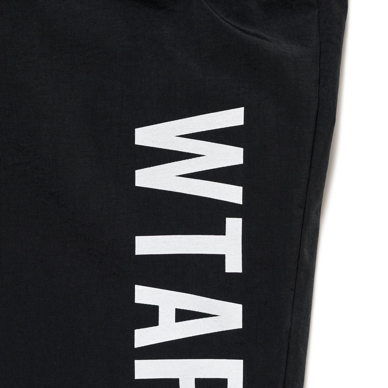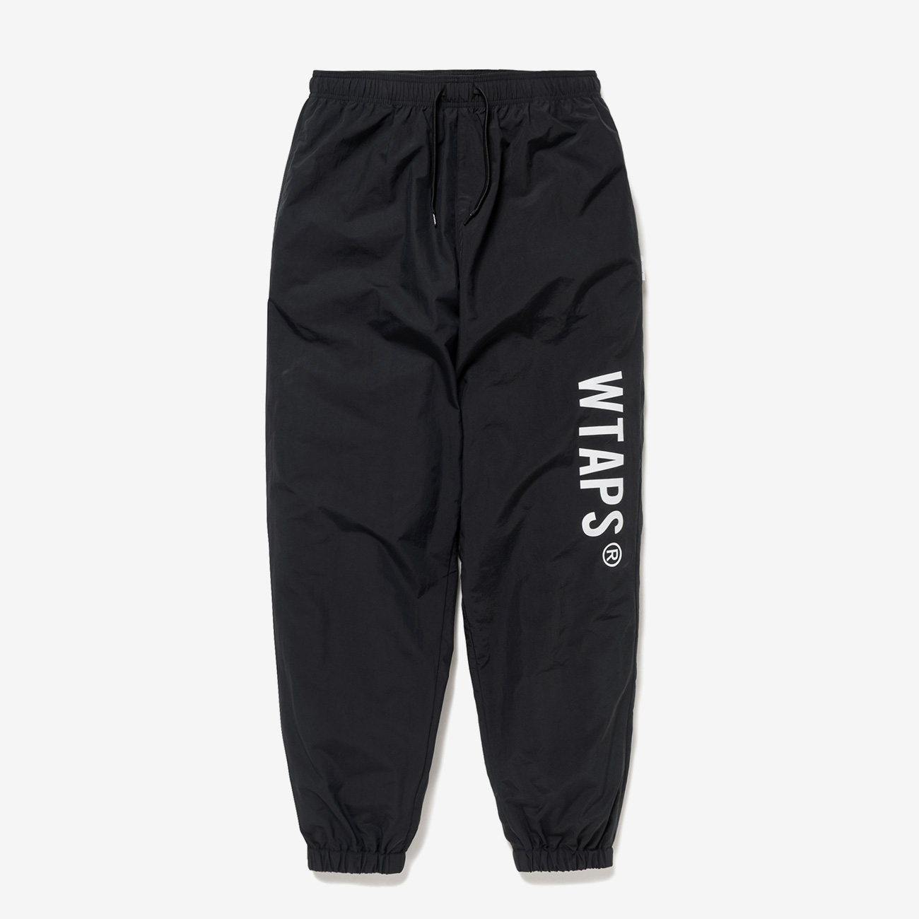 耐久防水を誇るPERTEX®のナイロンタッサー生地を使用したトラックパンツ。内側はリサイクル素材のメッシュを用いた総裏仕立て。フロント左太腿とバック右膝裏付近にプリントモチーフ。バック左膝裏付近とヒップポケット下にヒートトランスファープリントモチーフを配置。MODEL:182cm/SIZE:L(03)