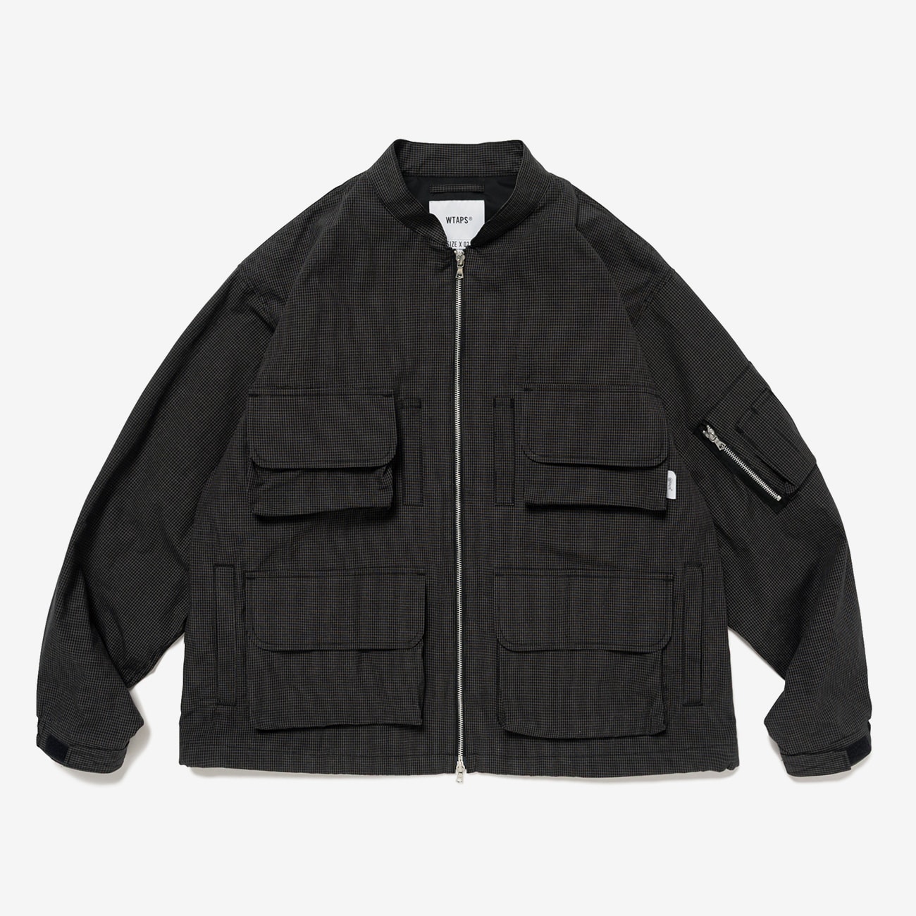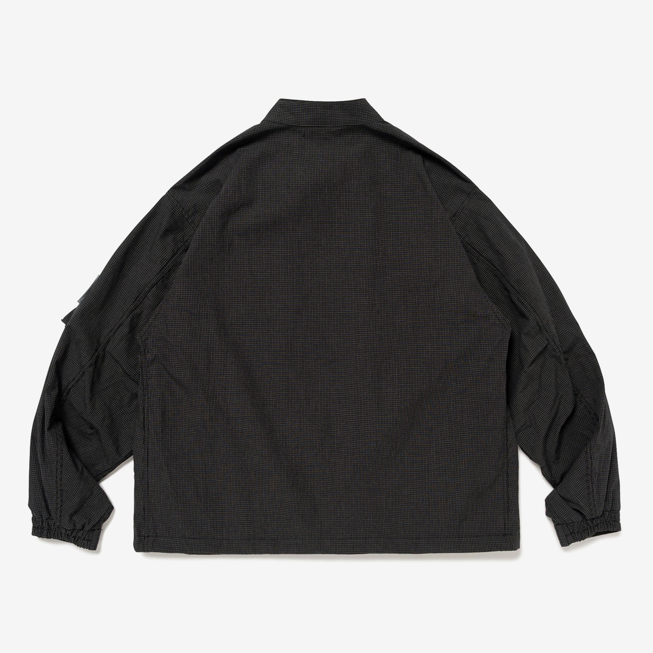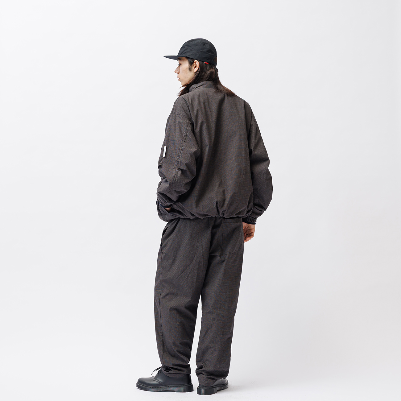 ハリ感とドライな風合いが特徴のワッシャーウェザー生地を使用したジャケット。フロントに左右対称のポケットと左袖にポケットを配し、袖口はベルクロの仕様。裾は内蔵したドローコードによるシルエットの調節が可能。MODEL : 180cm / SIZE : LARGE(03)