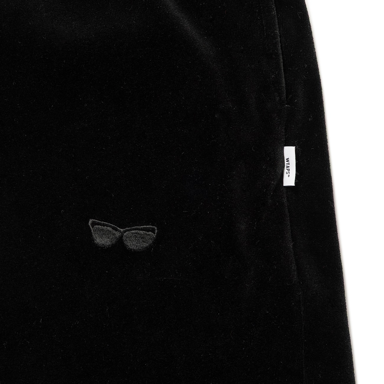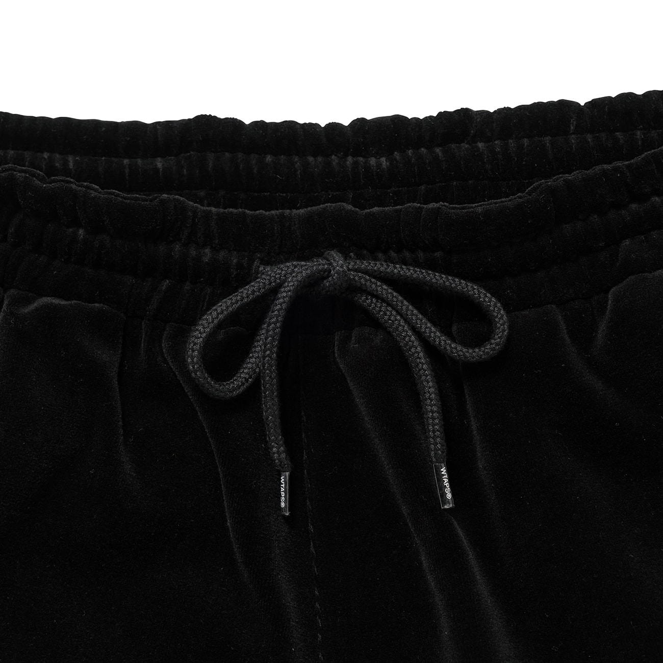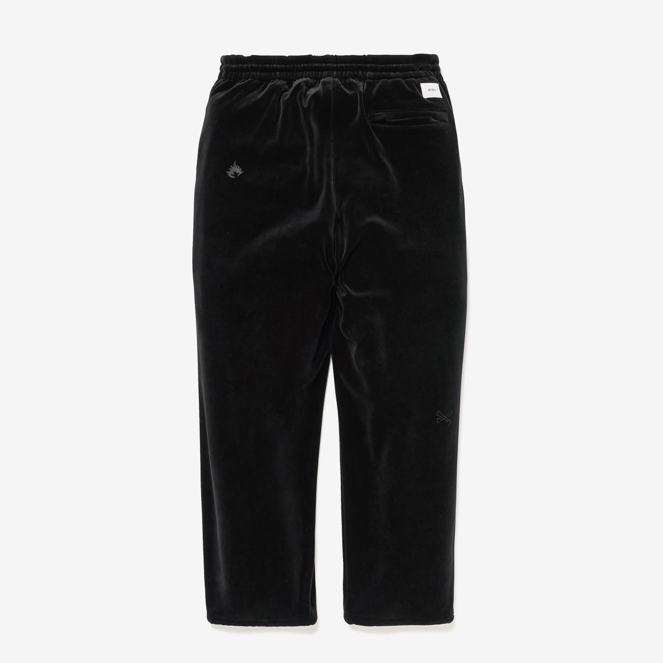 コシのあるベロア生地を使用したトラックパンツ。ウエストは内蔵したエラスティックとスピンドルシステムで、裾はスピンドルシステムで調節可能。全面に刺繍モチーフを配置。MODEL:178cm/SIZE:L(03)