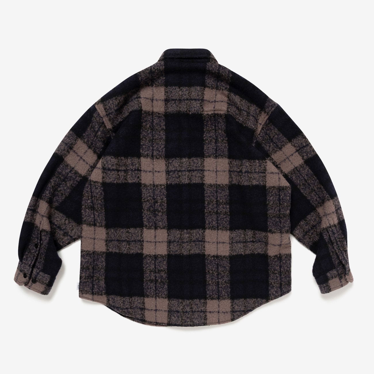 トライスピンループの起毛素材を使用したチェックシャツ。緩やかなラウンドカットで、シルエットが特徴的なオーバーフィットモデル。MODEL:182cm / SIZE:L (03)